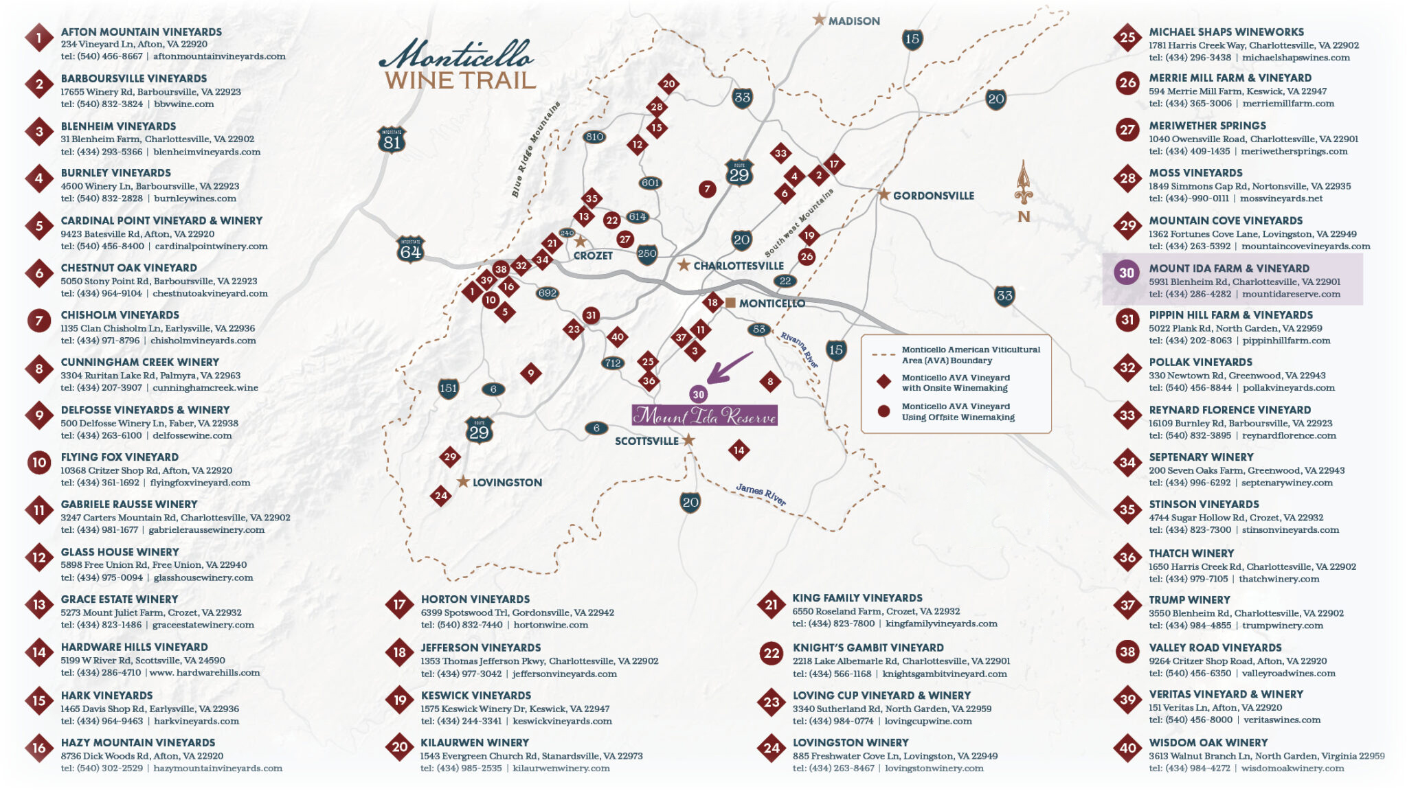 When coupled with a generational location and notoriety as one of the most popular and largest wineries/breweries along the historic route in Southern Albemarle County – home to Monticello, Ashlawn Highland, Trump Winery, Dave Matthews’ Blenheim Vineyards, Grace Vineyard, and Steve Case’s Early Mountain Vineyard – with significant expansion capabilities, the Mt. Ida Reserve offering represents a once-in-a-lifetime opportunity for domestic and international investors/owners alike.